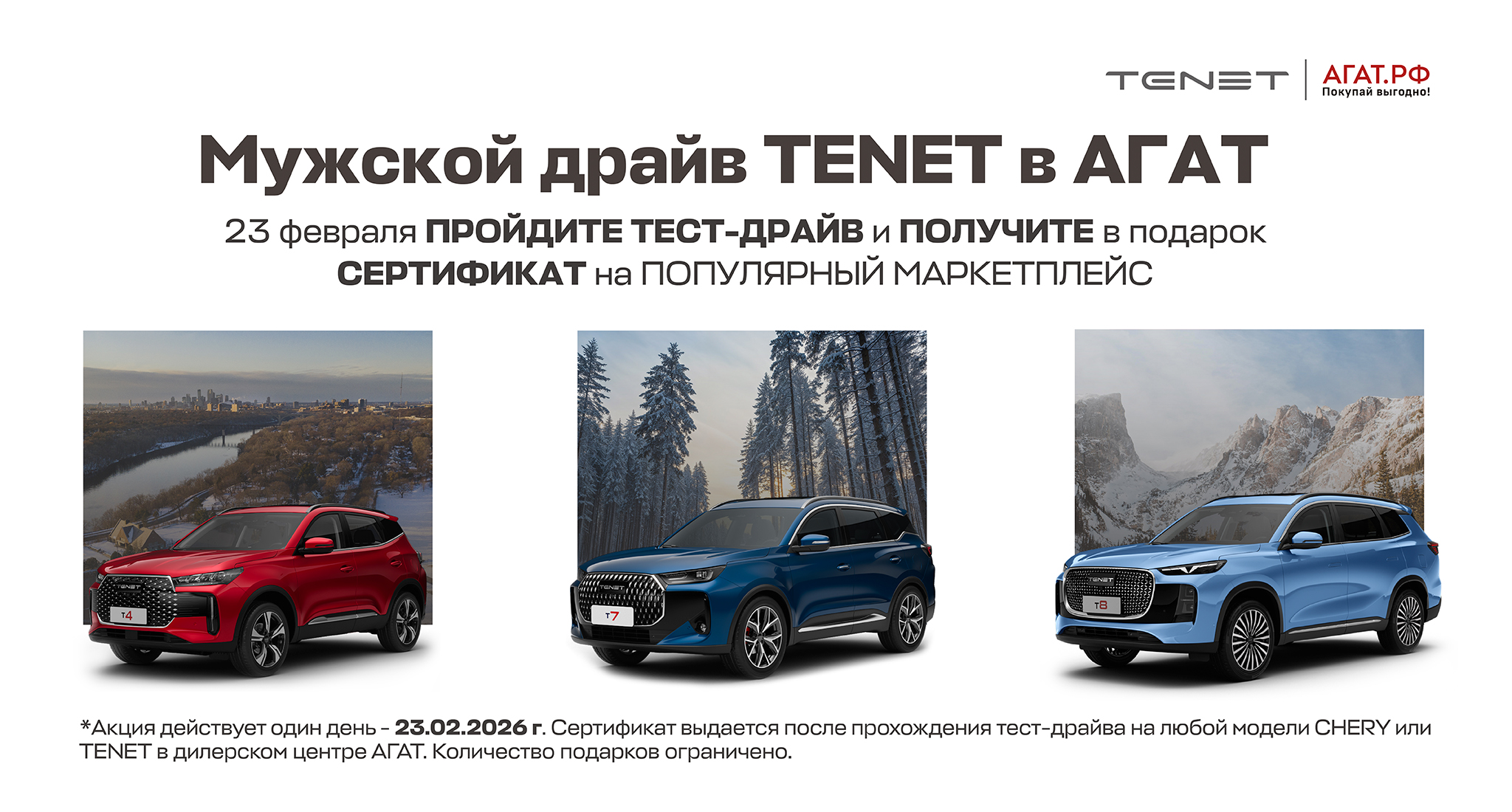 В честь Дня Защитника Отечества TENET АГАТ проводит праздничную акцию «Мужской драйв»!
